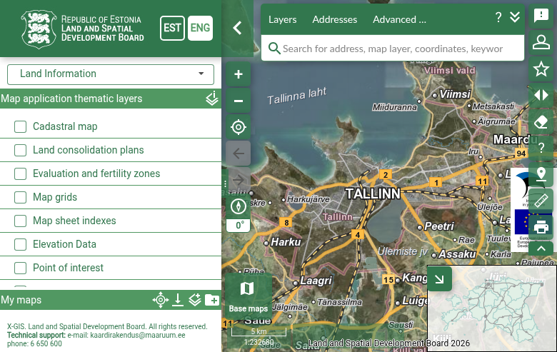 Go to geoportaal.maaamet.ee/eng/ to access the Estonian Land Board Geoportal in English.