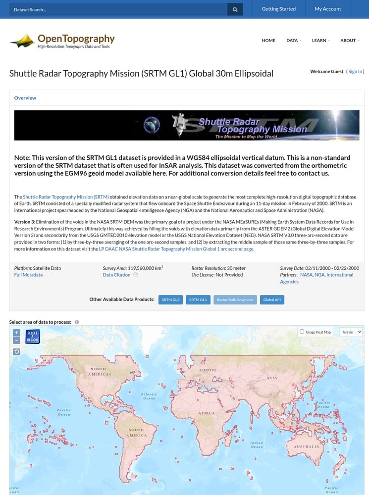 OpenTopography is a National Science Foundation-funded facility that provides free, centralized access to Earth science-oriented topography data. Hosted at the San Diego Supercomputer Center, it offers both high-resolution point cloud data and global raster DEMs to researchers, educators, and professionals worldwide.