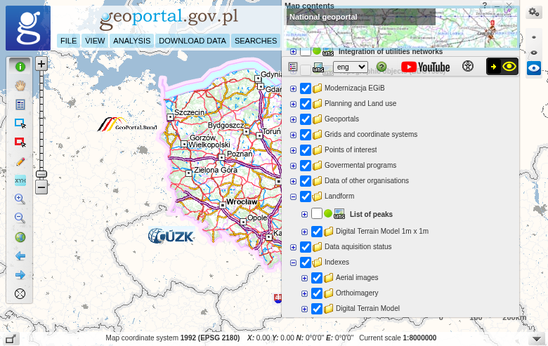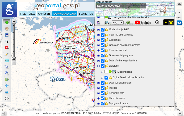 Geoportal.gov.pl is Poland’s national spatial data infrastructure, operated by GUGiK (Główny Urząd Geodezji i Kartografii). The portal provides free, unrestricted access to LiDAR measurements from the ISOK project, which collected airborne laser scanning data across Poland between 2011 and 2020.