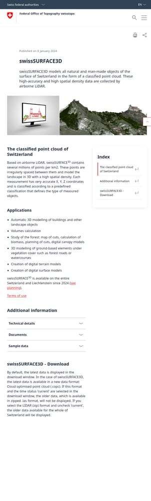 Navigate to the swissSURFACE3D product page on the swisstopo website: