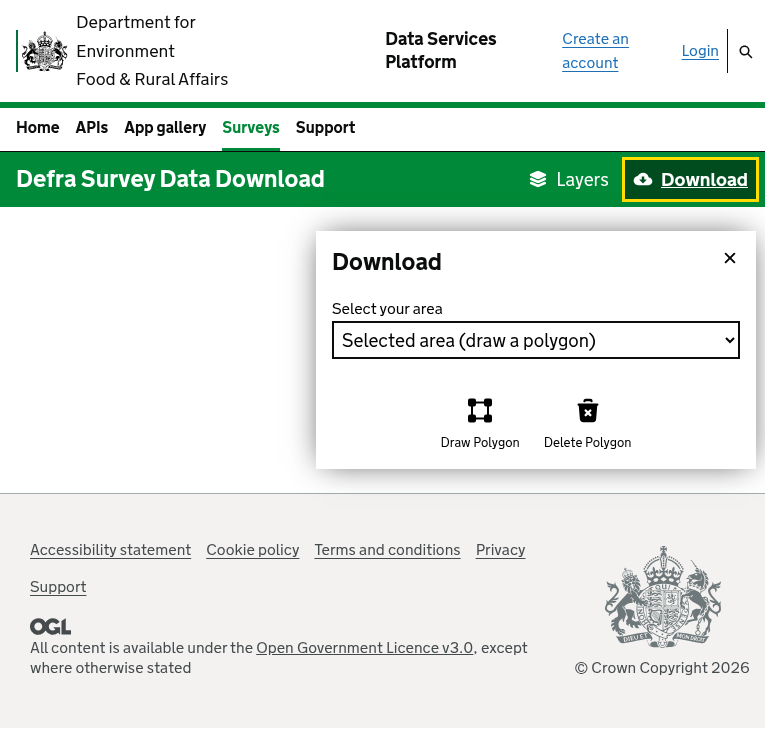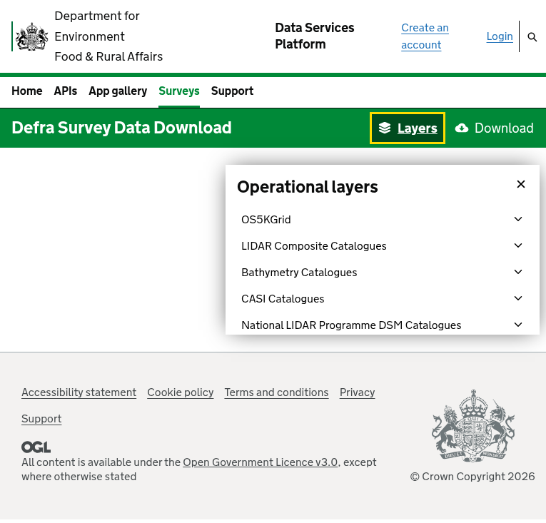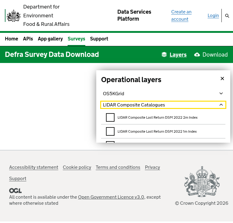 Navigate to environment.data.gov.uk/survey — the Environment Agency’s official survey data portal.